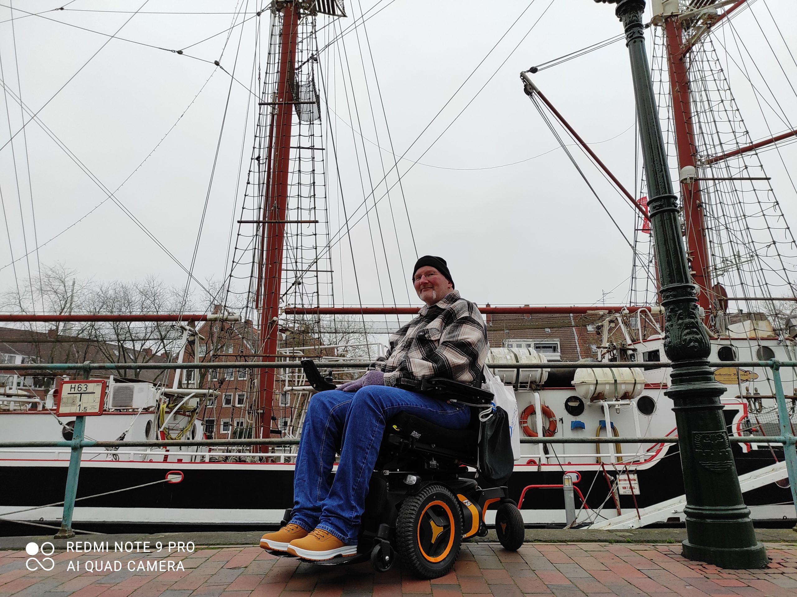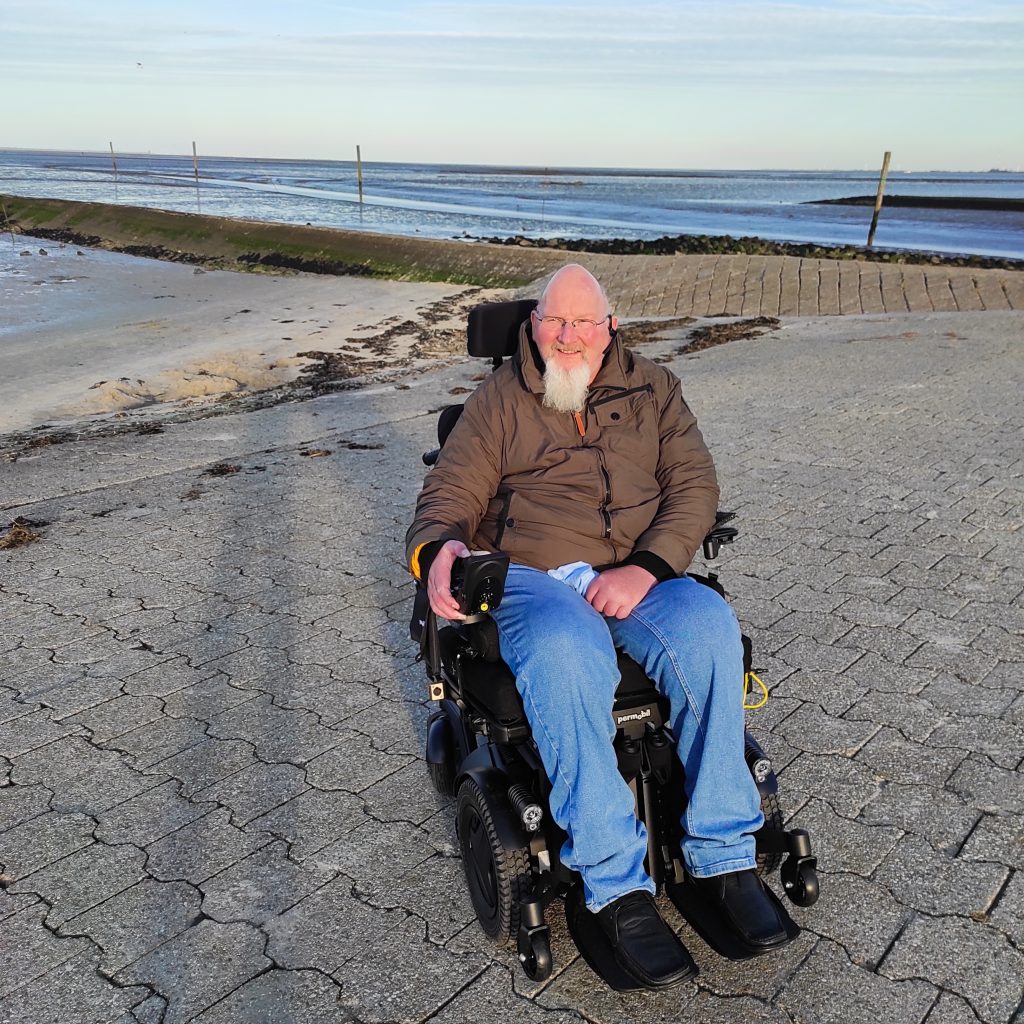 Ich bin Jahrgang 1966, fühle mich aber lange nicht so alt. Ich bin 1,90m groß und ca. 120kg schwer (ich komme da auch nicht runter, denn ich lebe viel zu gerne gut). Ich habe eine seltene Nervenkrankheit, wodurch ich beine Beine und den linken Arm nicht mehr kontrollieren oder ansteuern kann. Das sind keine Eigenschaften, um sich zu rühmen, aber wer mich unterstützen und handhaben möchte, sollte das wissen. Ich bin also ständig auf Elektro-Rollstuhl oder Aktiv-Rollstuhl mit Schiebung (Assistent an den Handgriffen) angewiesen und habe Zuhause alle notwendigen Hilfsmittel, el. Pflegebett, el. Patienten-Aufsteh-Lifter, Schwimmbadlifter mit HandiMove(R) Hebegestell. Ich lebe allein in meinem eigenen Haus, das (fast) vollständig ebenerdig – also befahrbar – ist, nur das Assistentenzimmer ist oben.